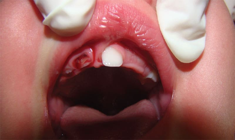 Si se pierde un diente de leche prematuramente a causa de un trauma dental, se debe realizar un tratamiento con aparatología para mantener el espacio del diente permanente que erupcionará 1 o 2 años más tarde.
