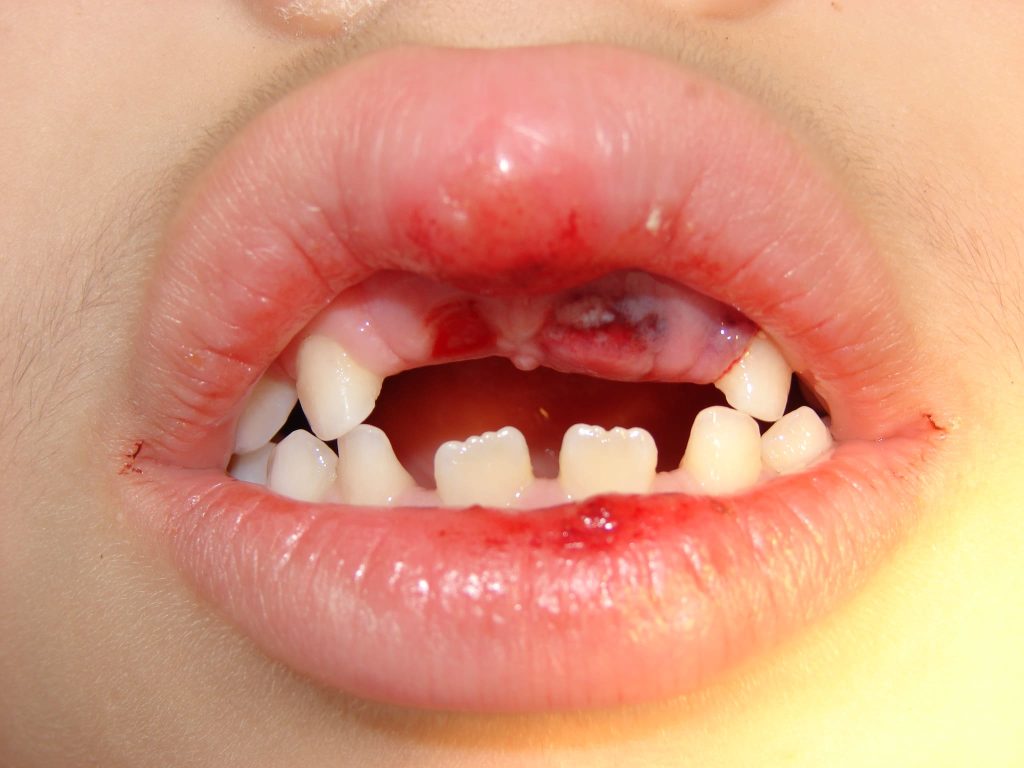 4. Maltrato físico; hace referencia violencia al Síndrome del Niño Maltratado (violencia doméstica, maltrato infantil), donde por golpes con objetos, la mano, puño, o por introducir de manera violenta chupetes, tenedores o cucharas, pueden ocasionarse este tipo de lesiones.
